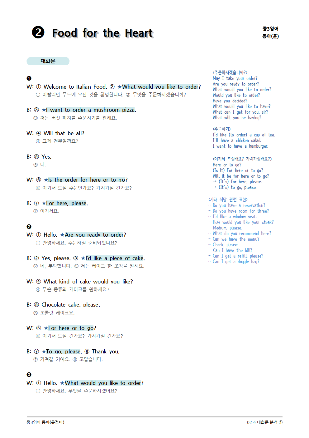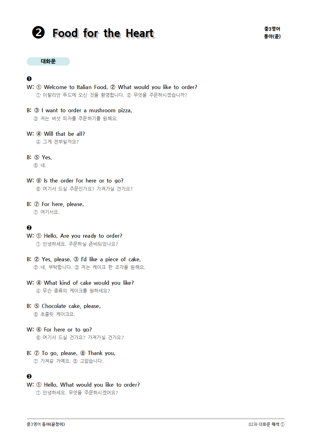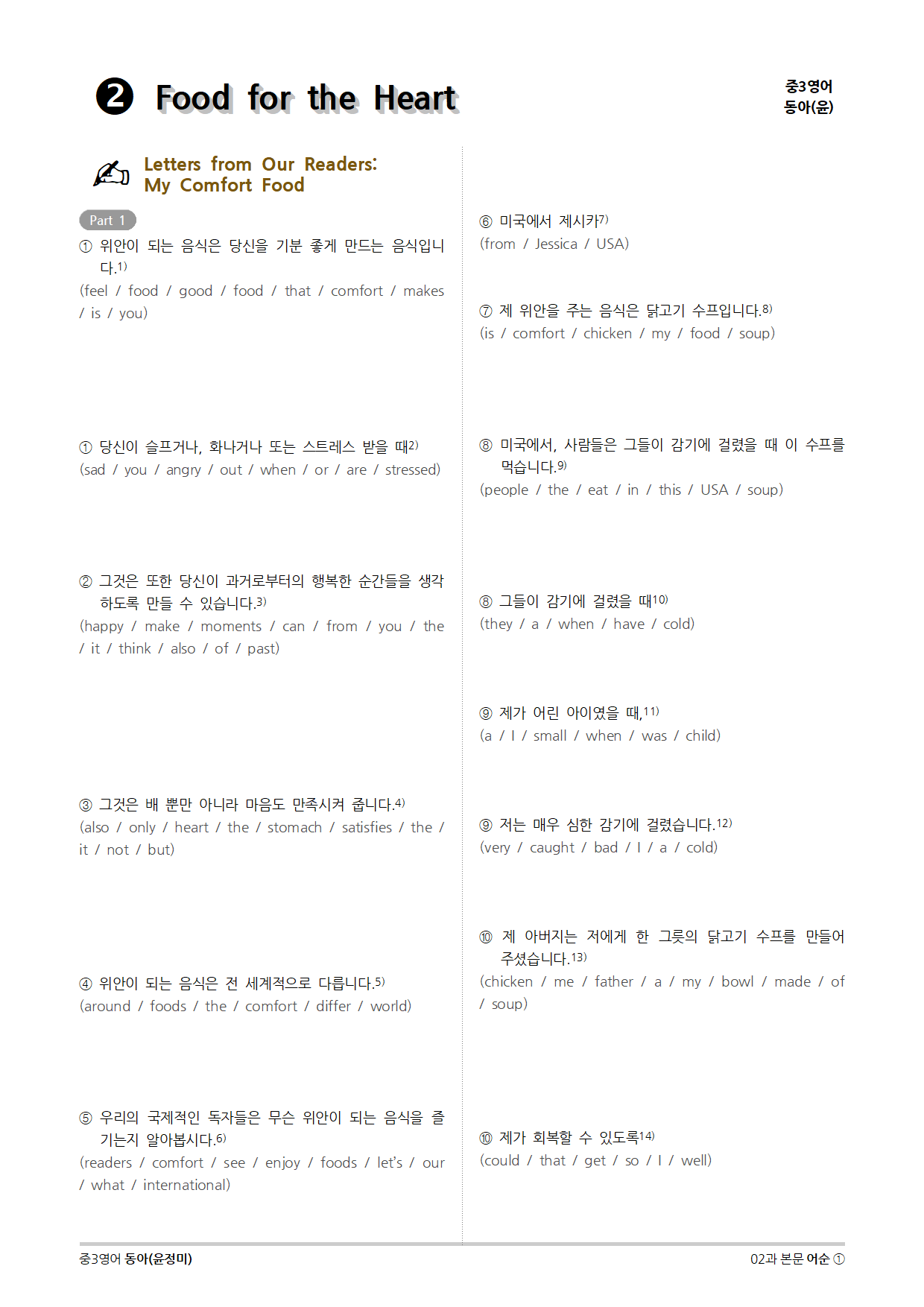 [2015개정] 중3영어 동아(윤정미) 02과 (2020)