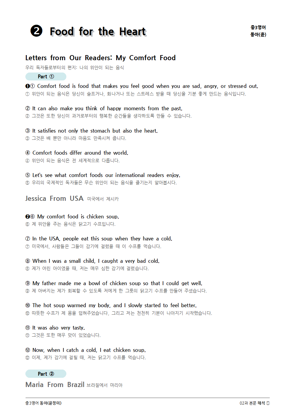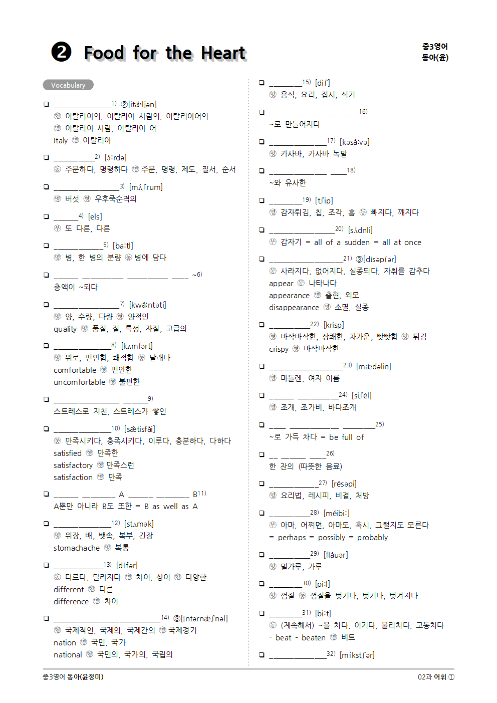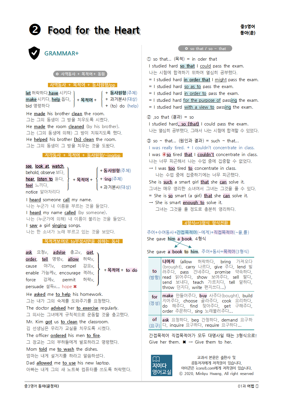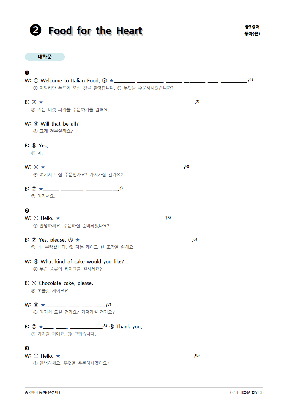 [2015개정] 중3영어 동아(윤정미) 02과 (2020)