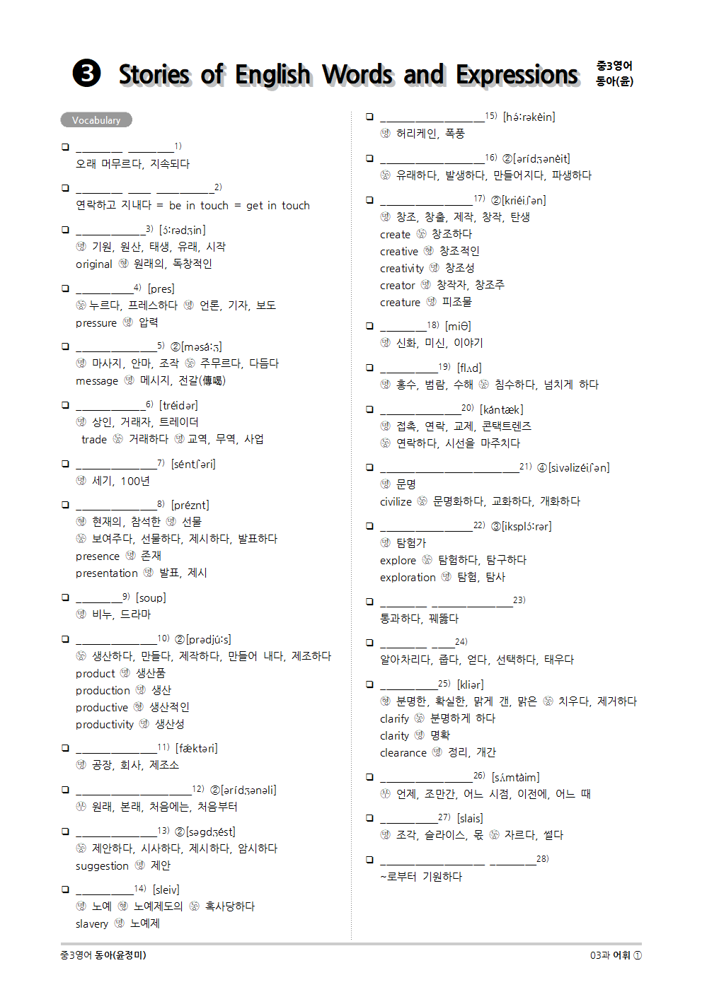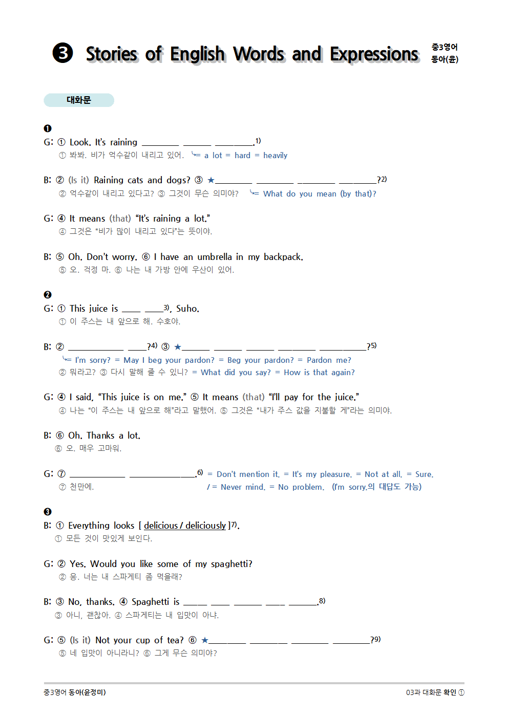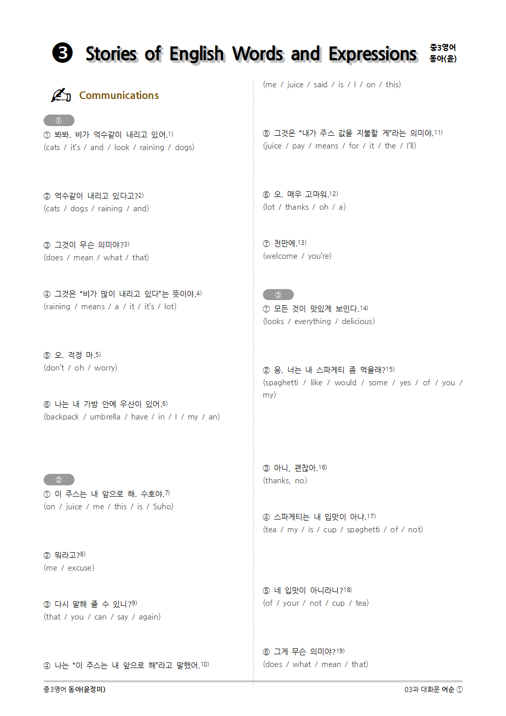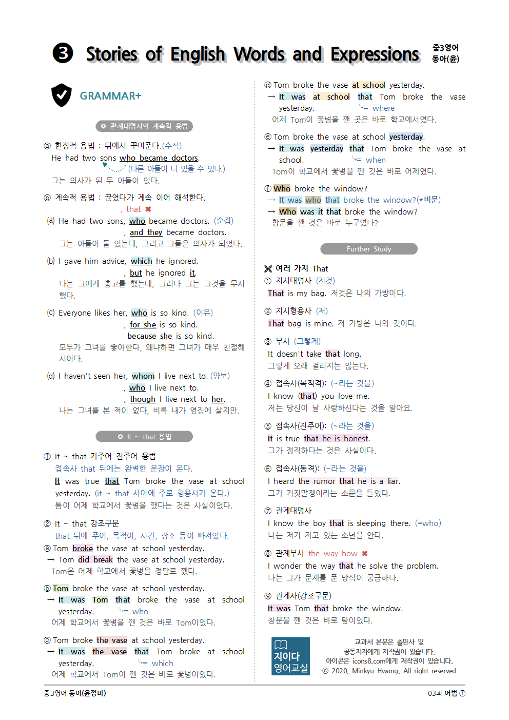 [2015개정] 중3영어 동아(윤정미) 03과 (2020)
