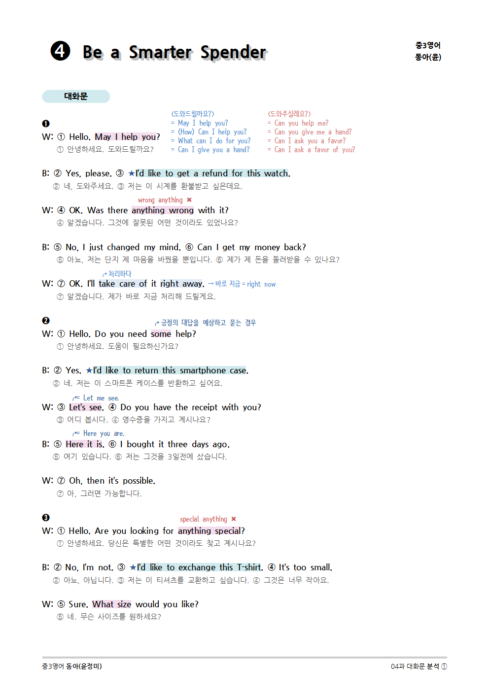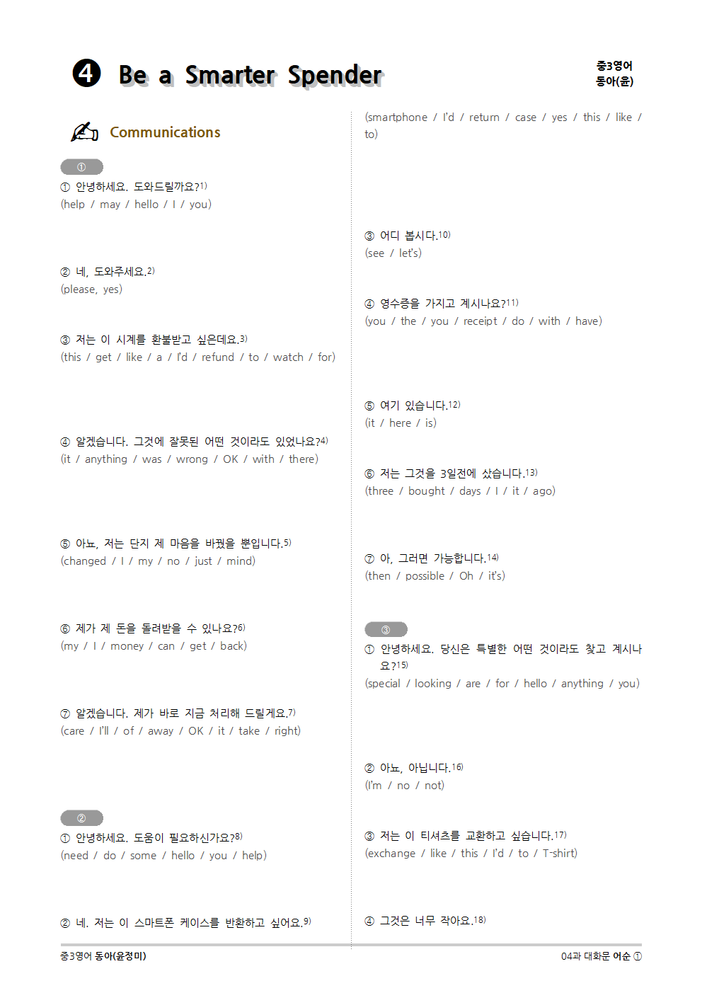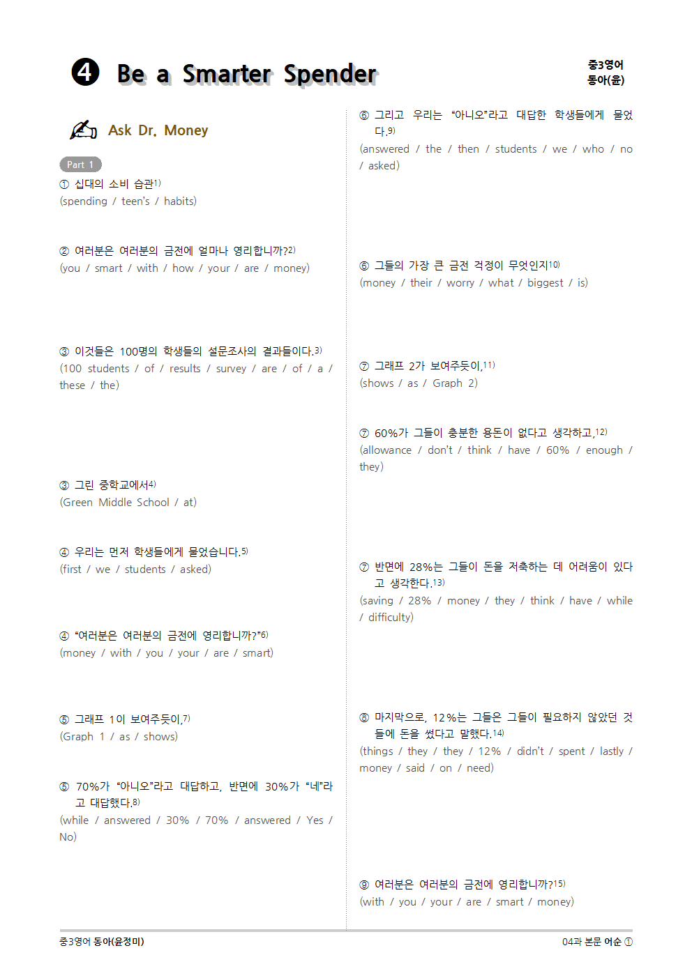 [2015개정] 중3영어 동아(윤정미) 04과 (2020)