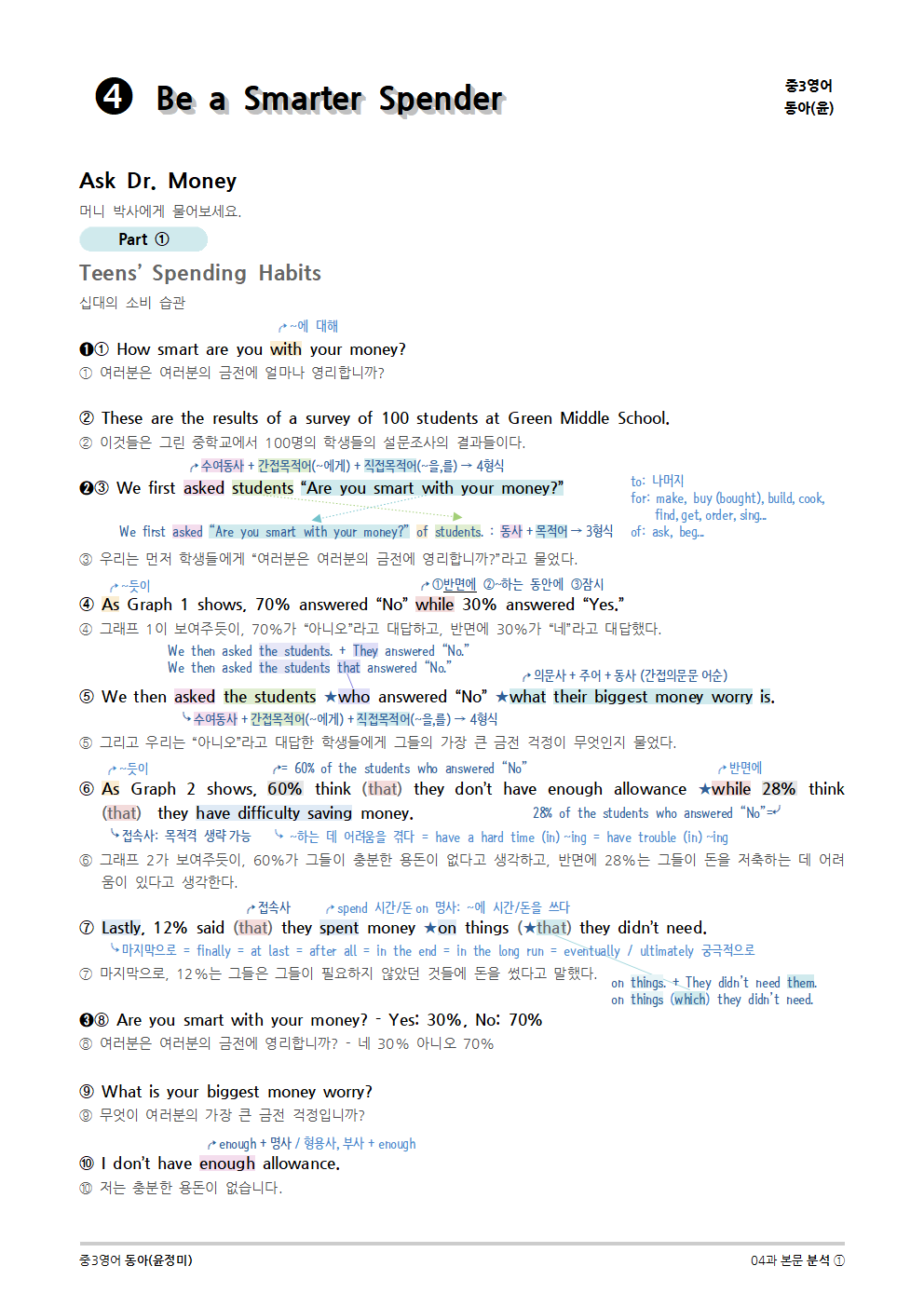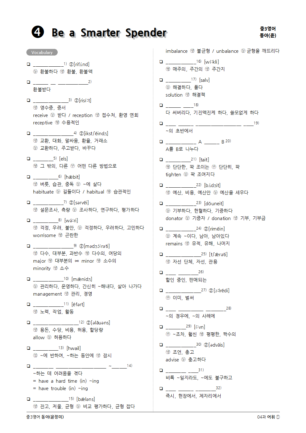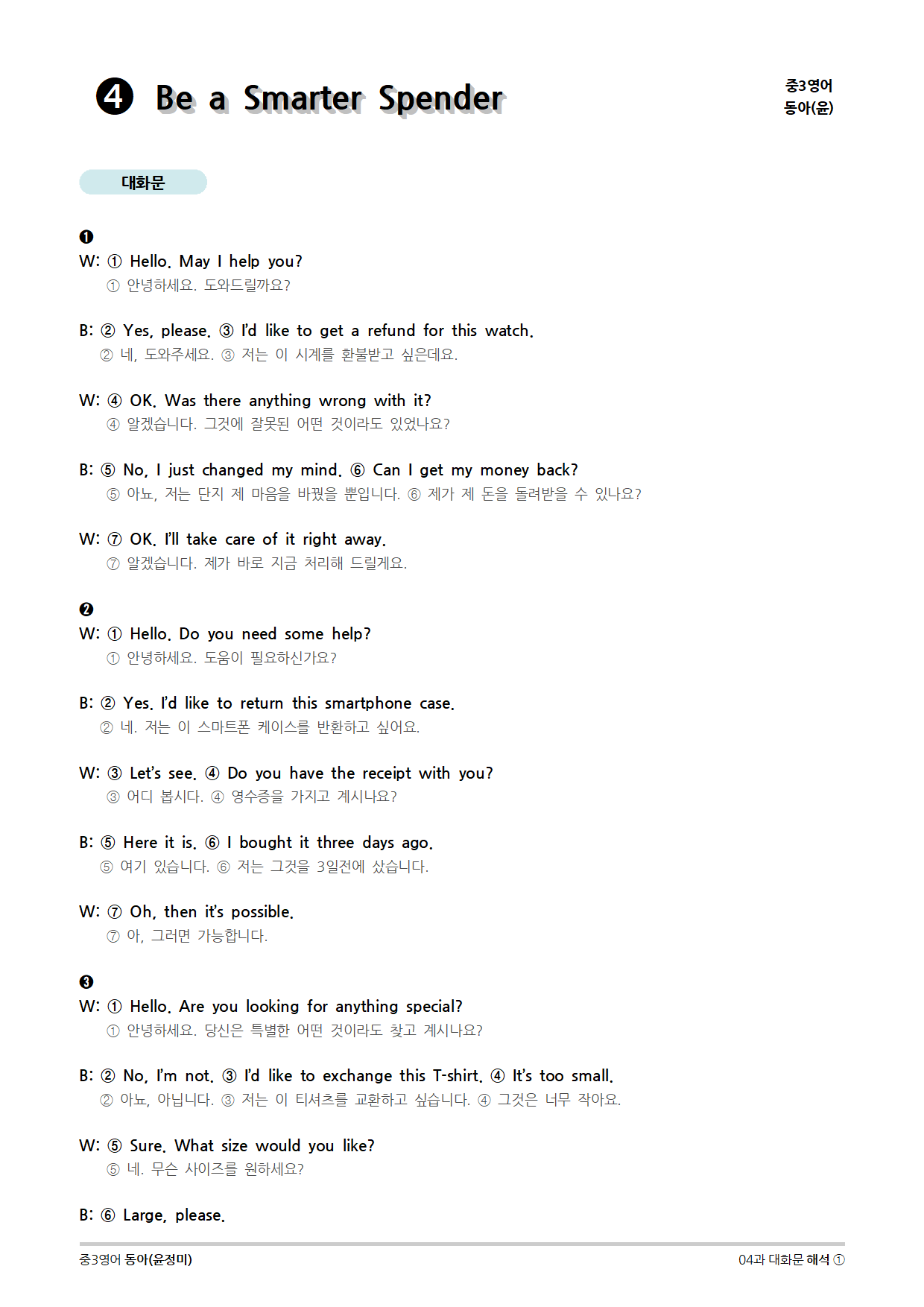[2015개정] 중3영어 동아(윤정미) 04과 (2020)