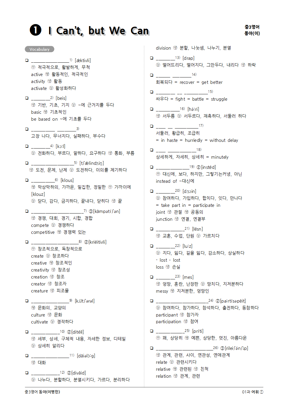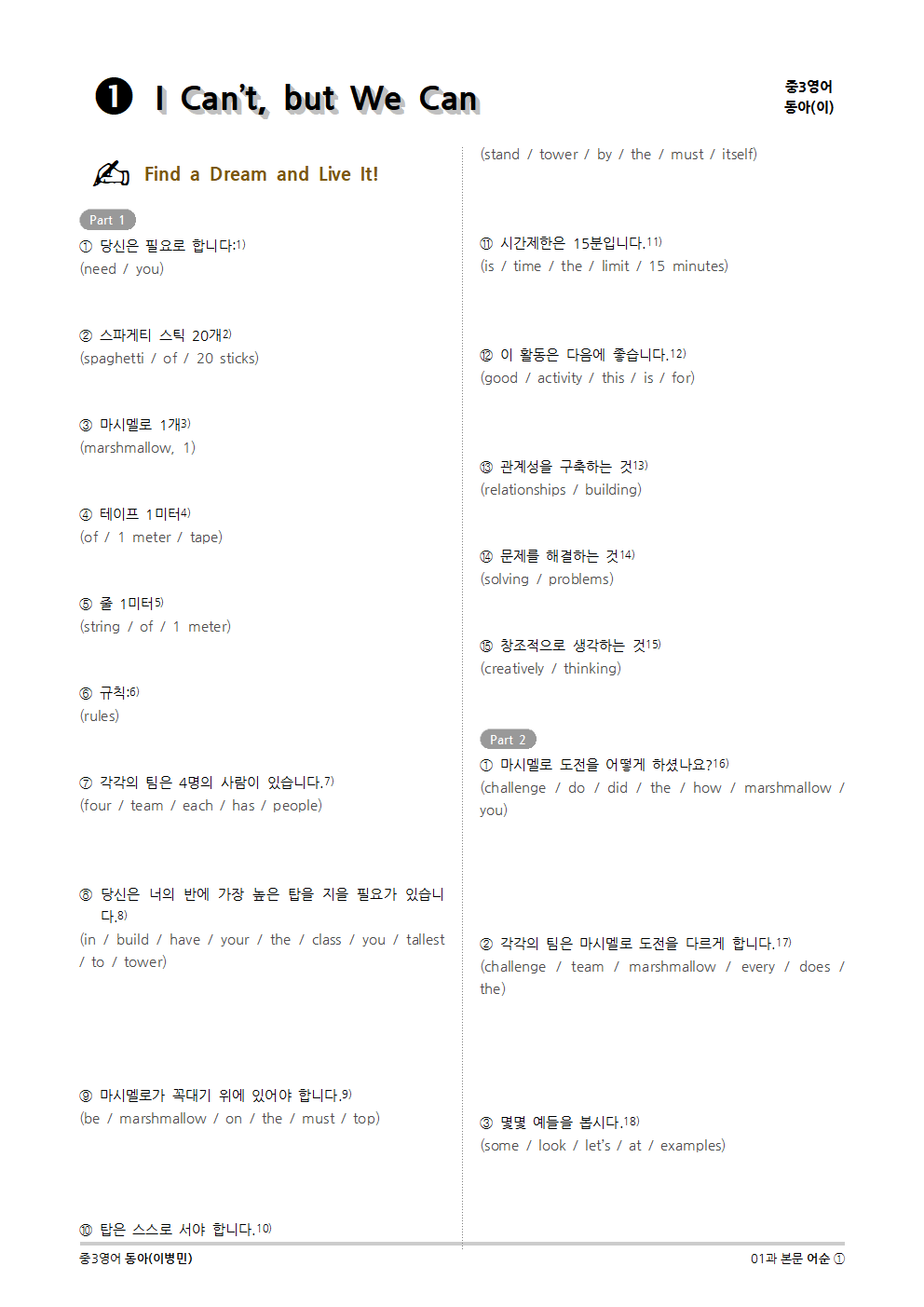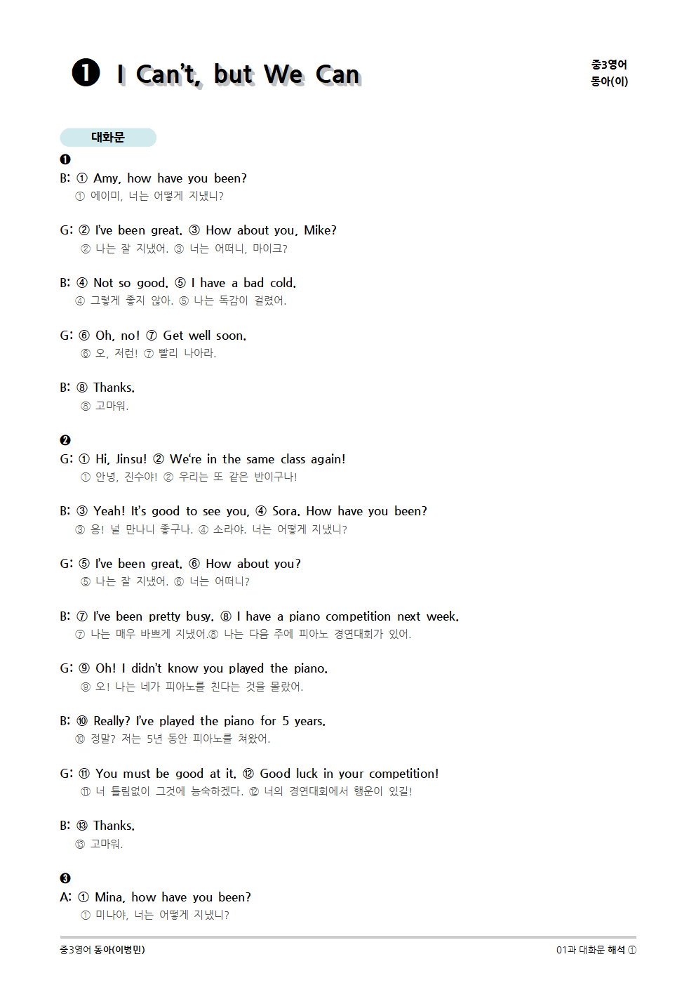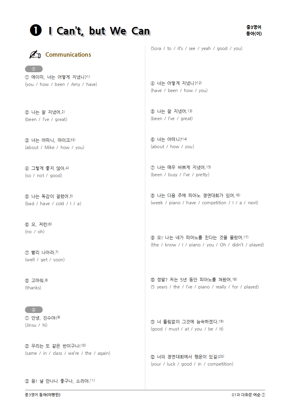 [2015개정] 중3영어 동아(이병민) 01과 (2020)