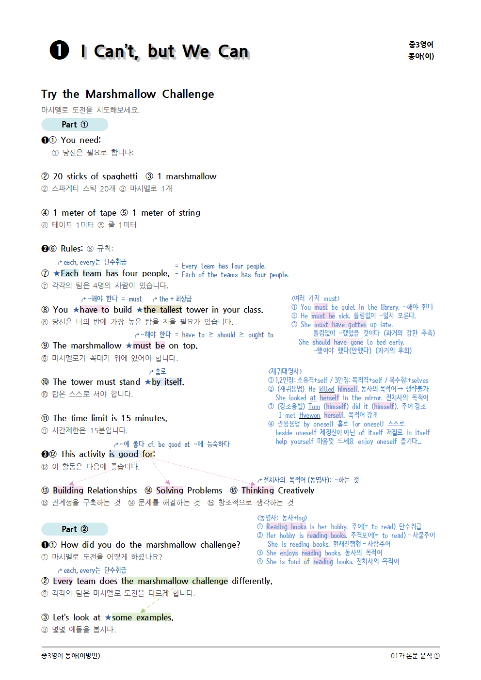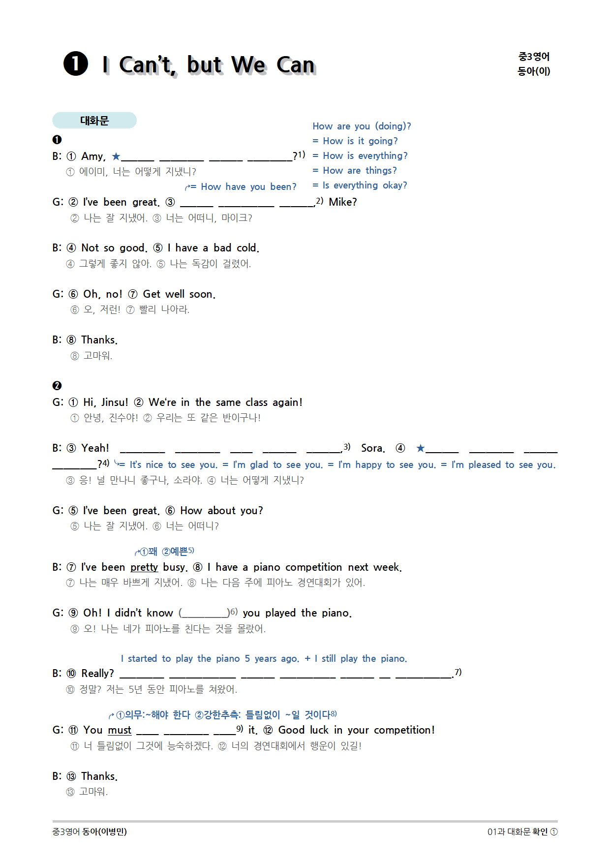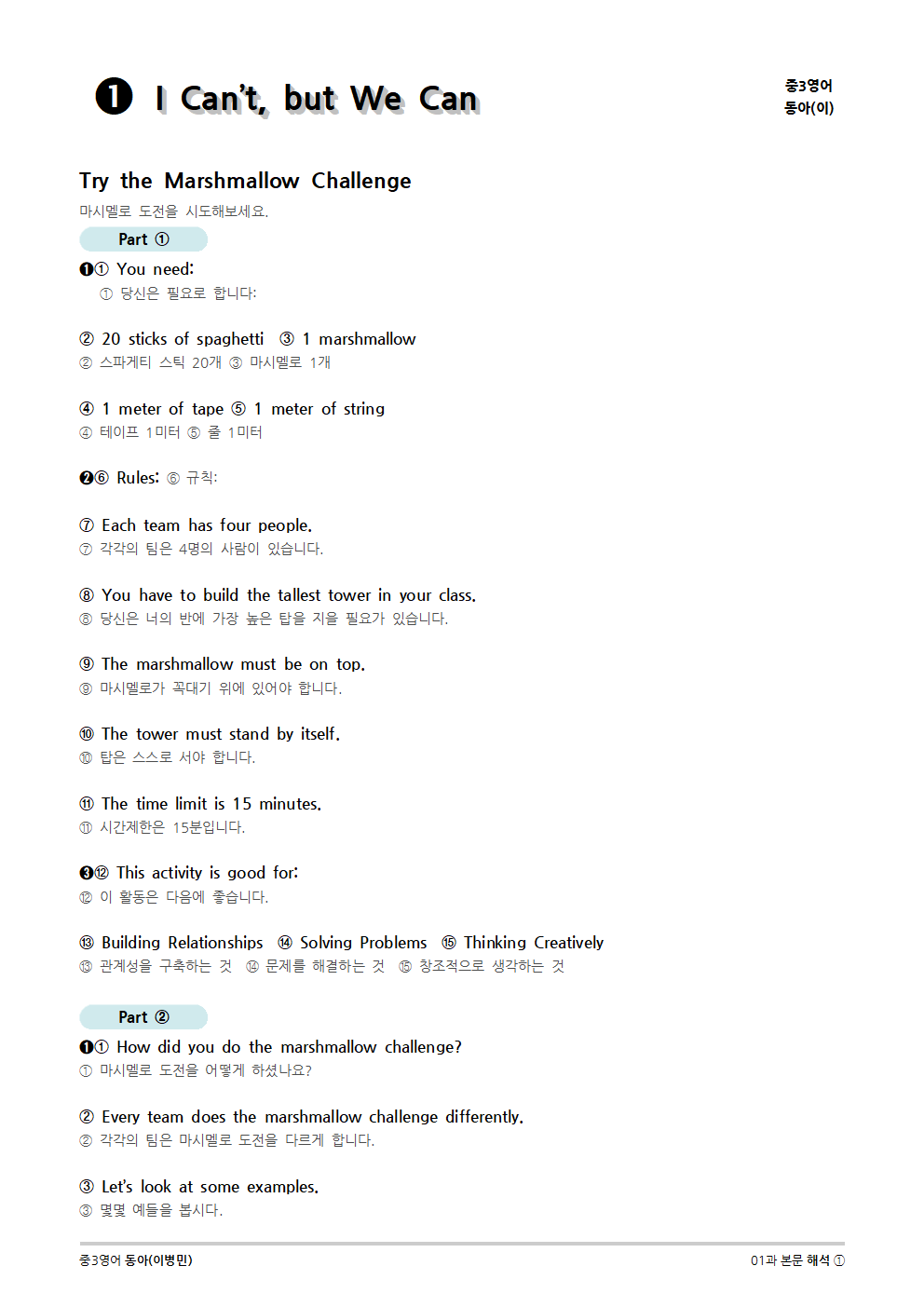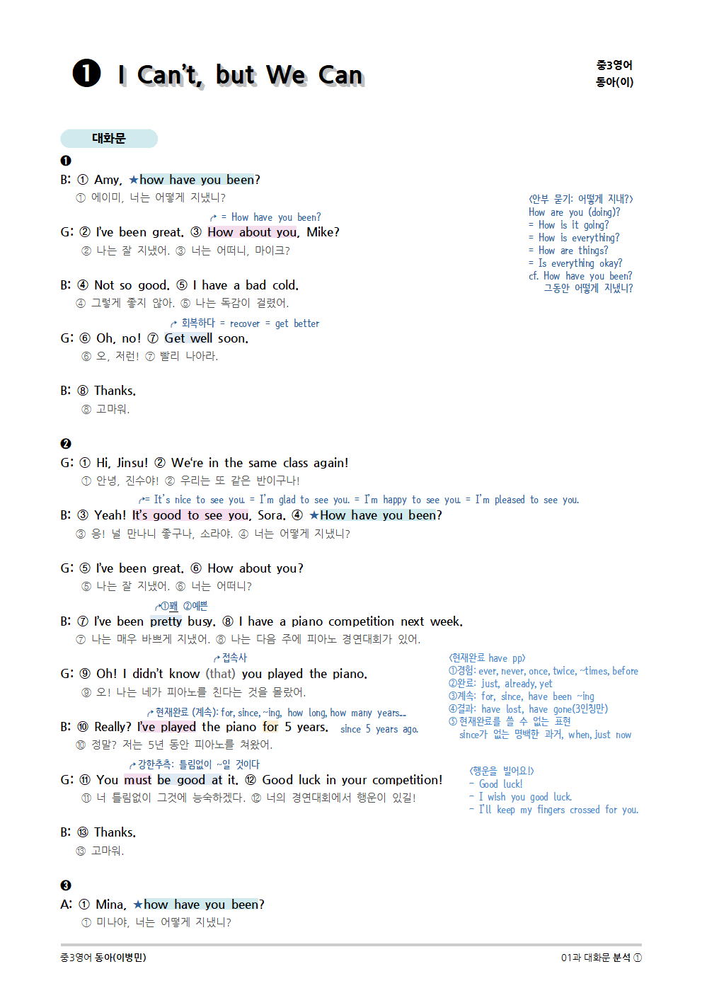 [2015개정] 중3영어 동아(이병민) 01과 (2020)