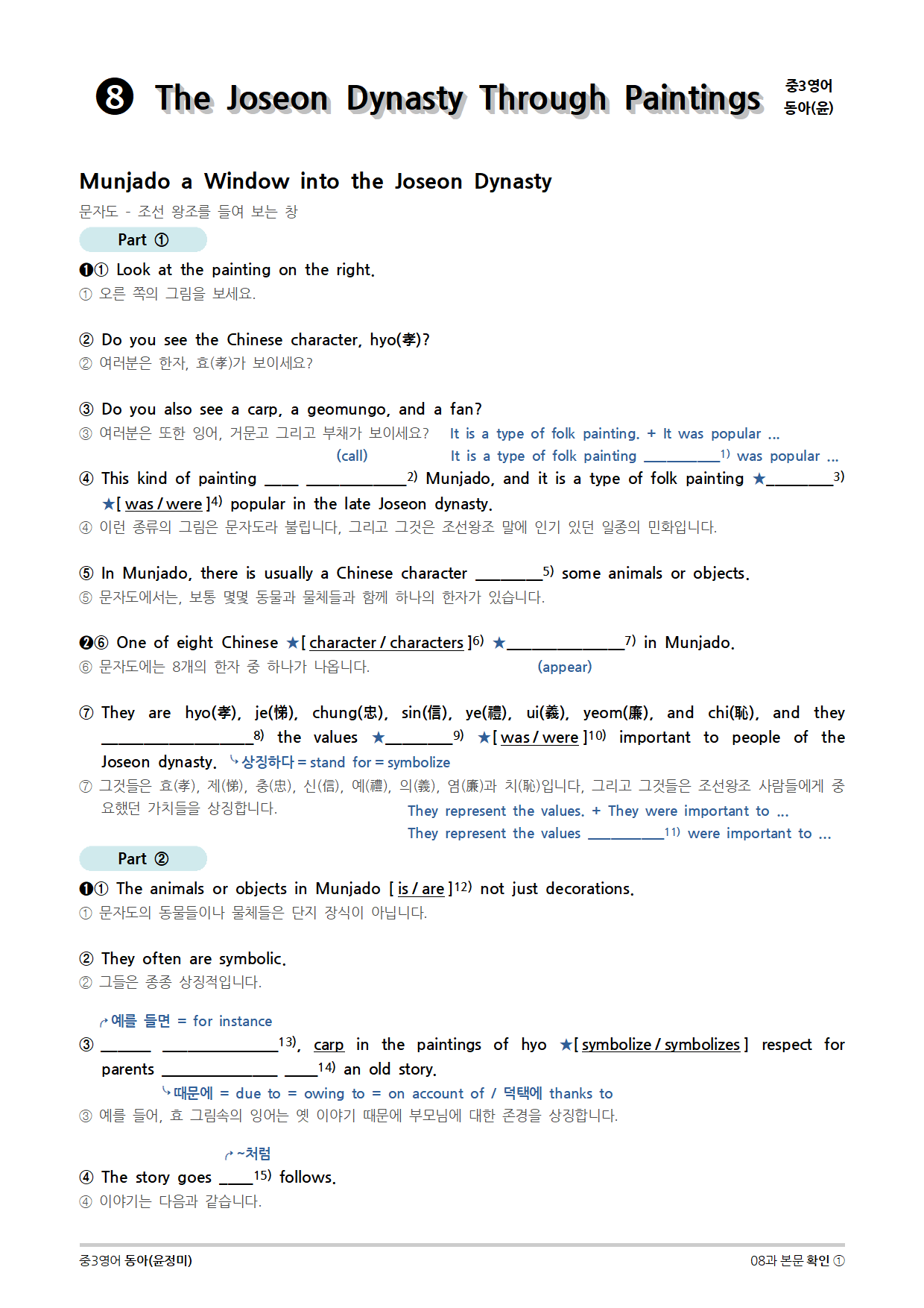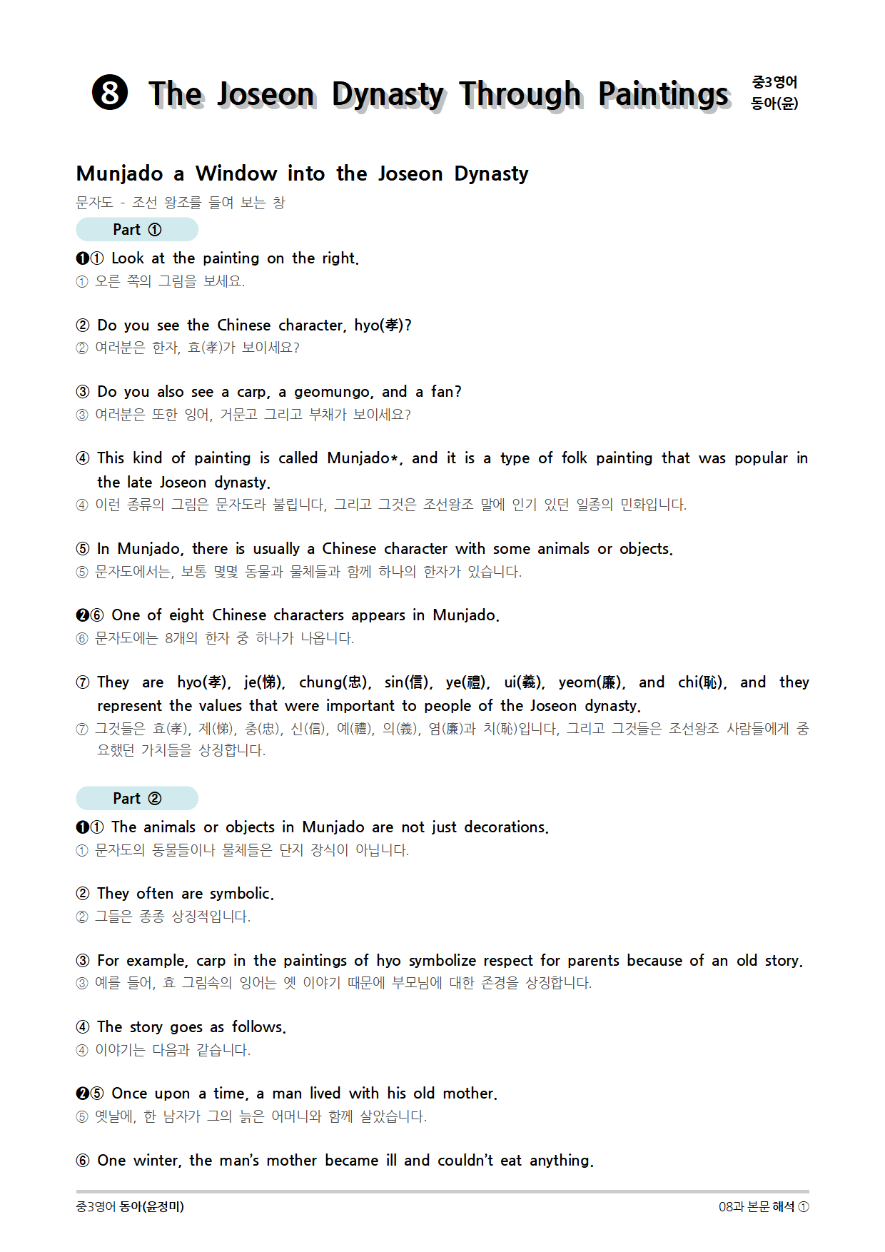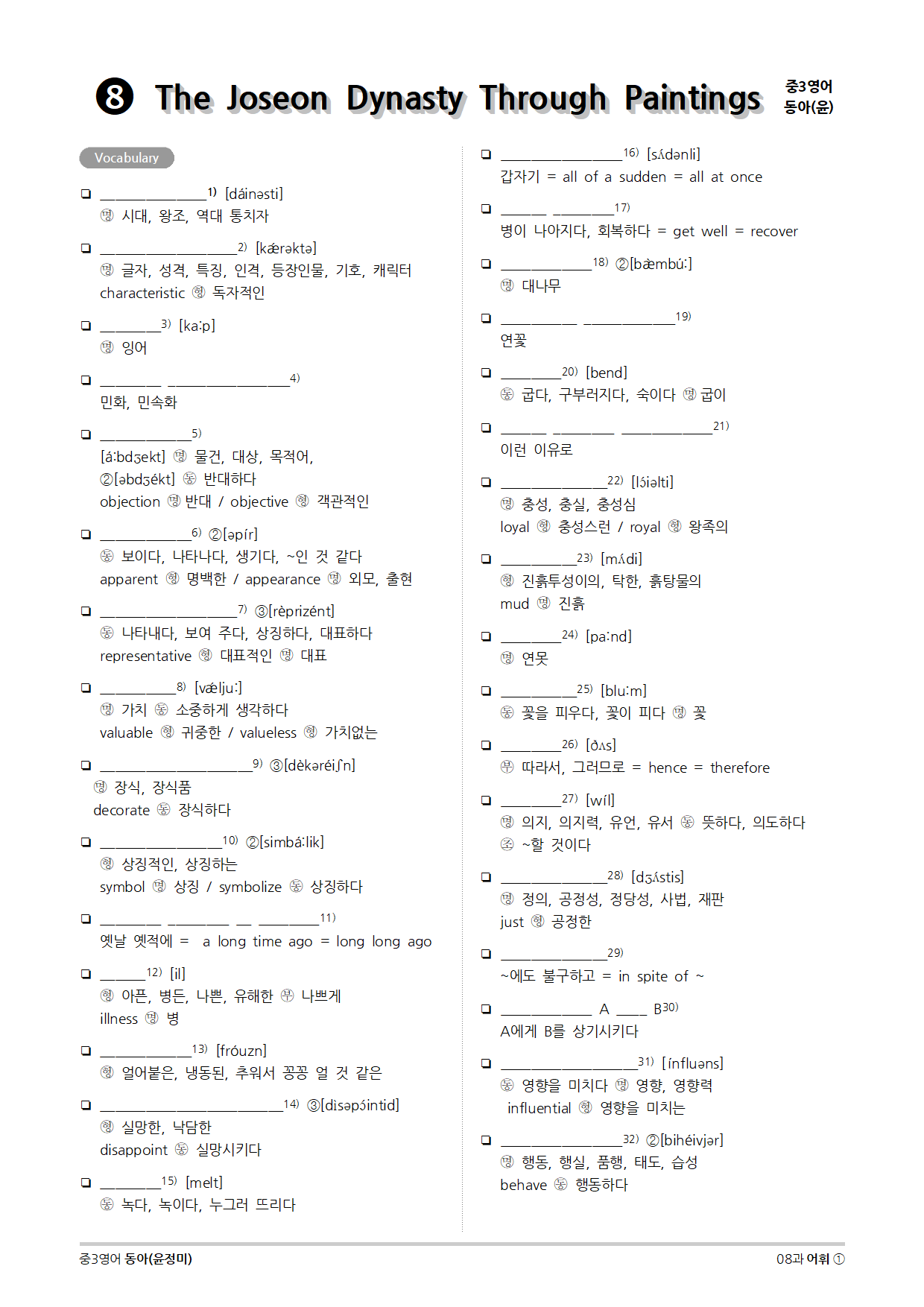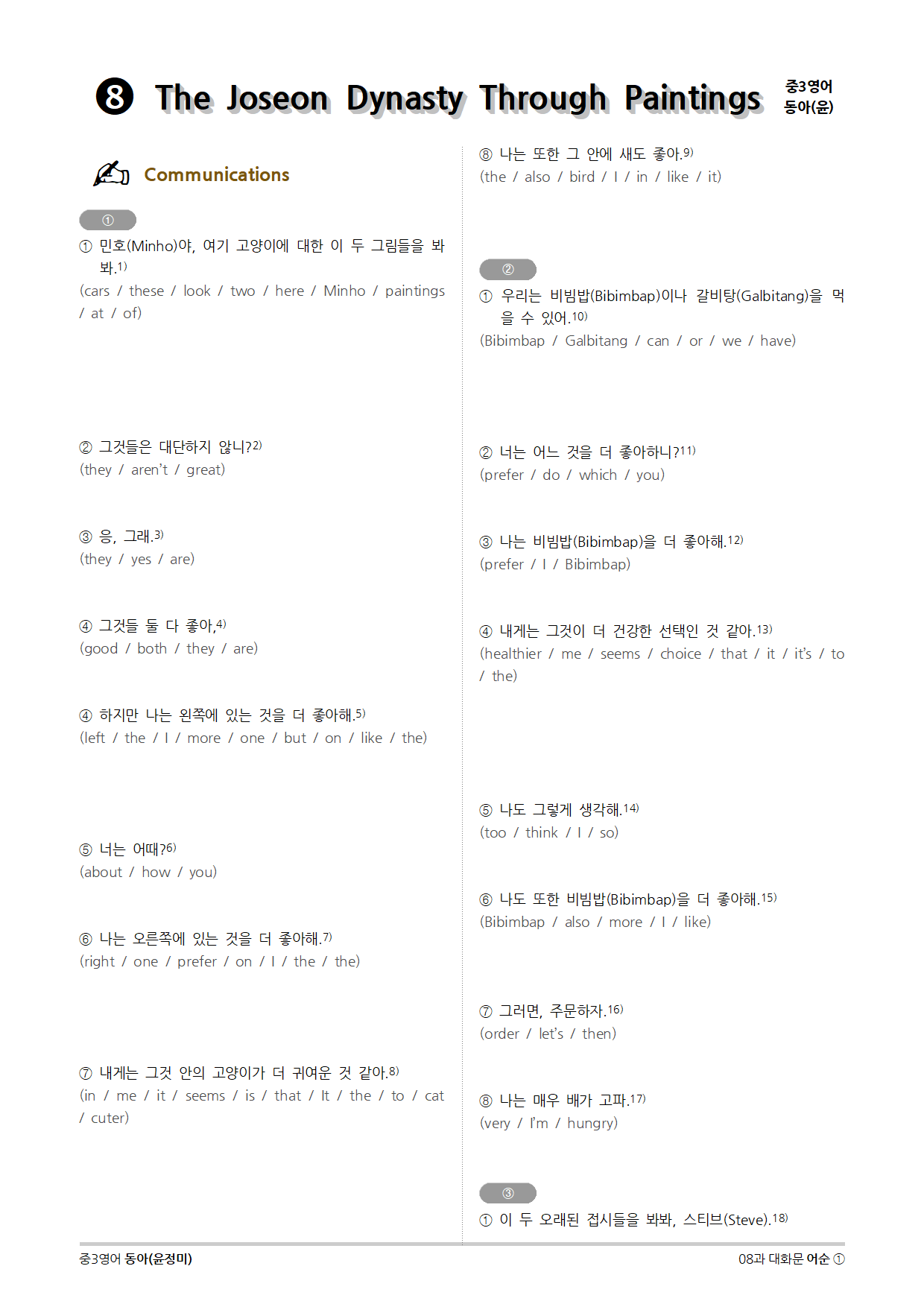 [2015개정] 중3영어 동아(윤정미) 08과 (2020)