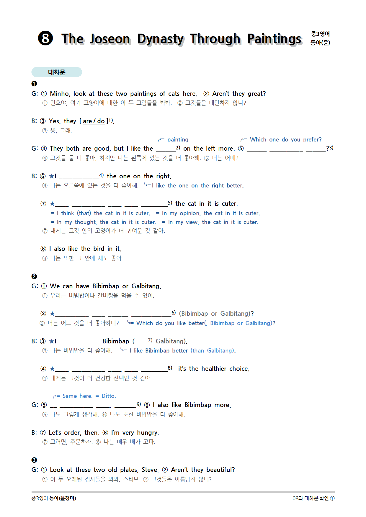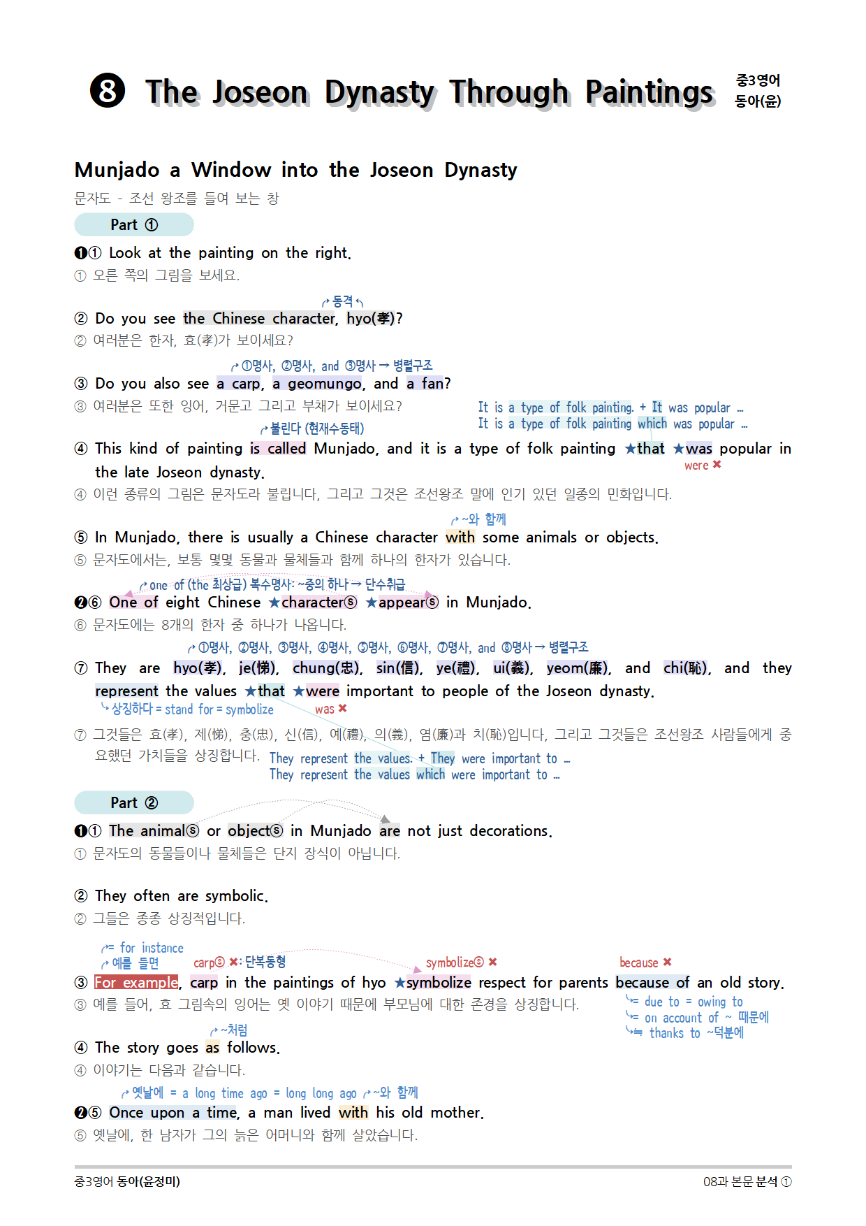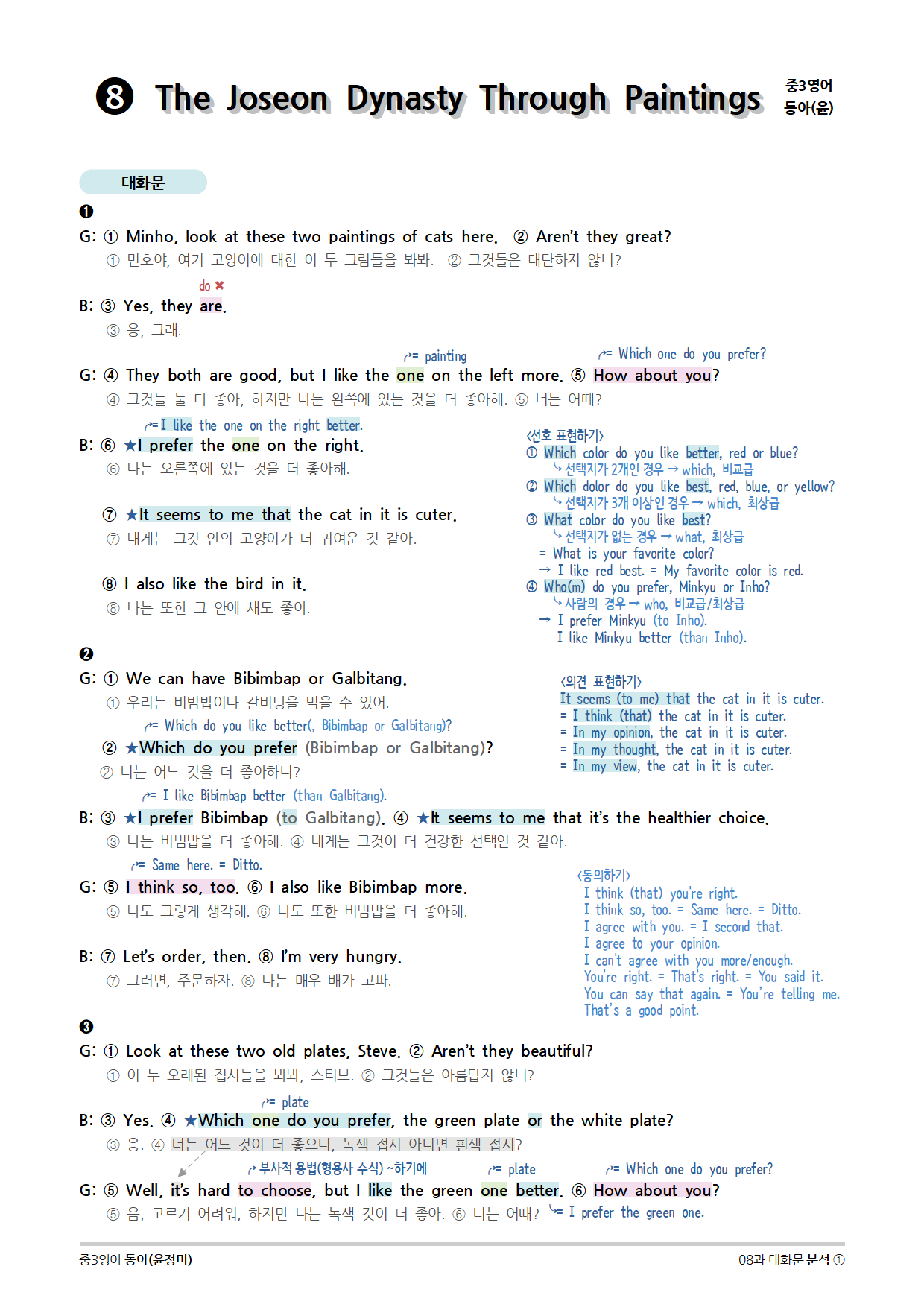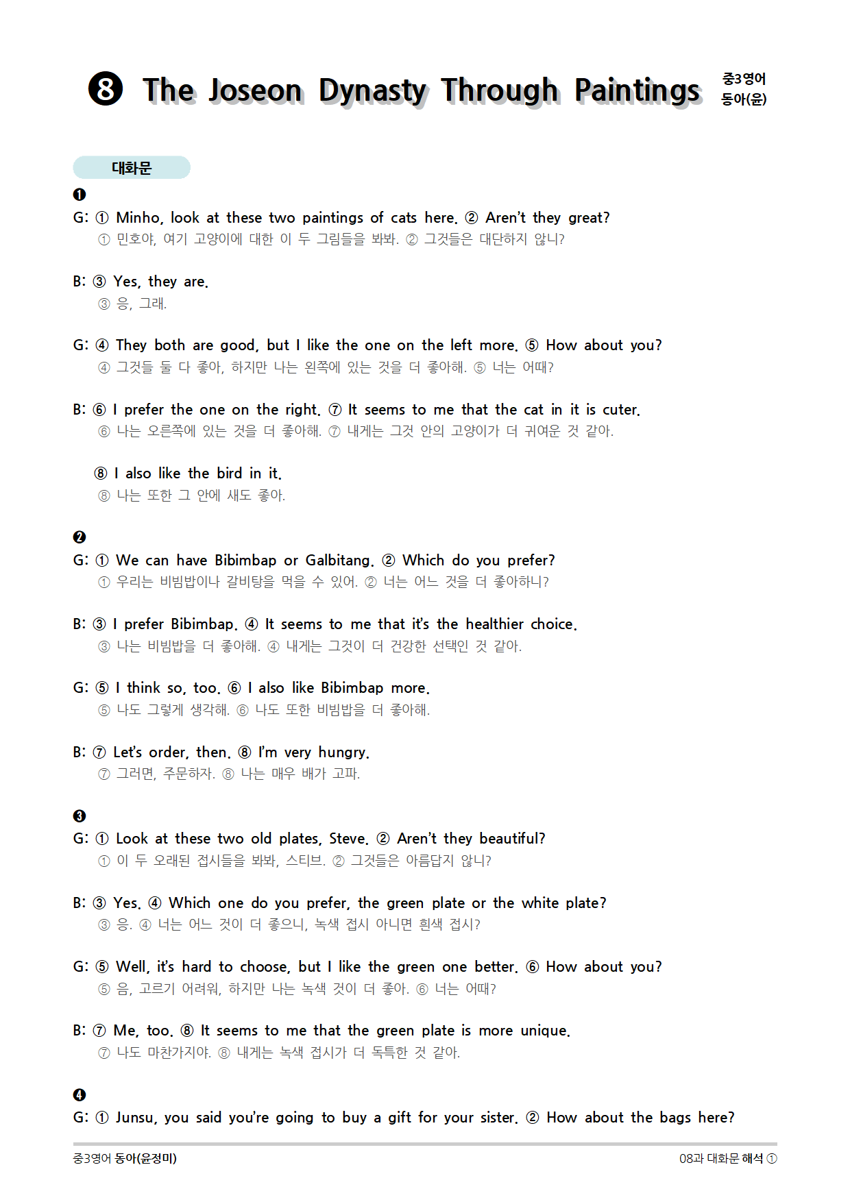 [2015개정] 중3영어 동아(윤정미) 08과 (2020)